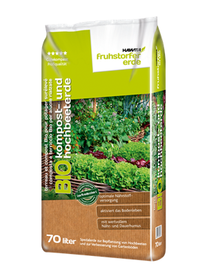 Die Hawita-Fruhstorfer Bio Kompost- und Hochbeeterde ist eine torfreduzierte Spezialerde zur Bepflanzung von Hochbeeten und zur Verbesserung von Gartenböden. Sie besteht aus hochwertigem Humus und Substratkompost aus dem Garten- und Grünflächenbereich. Eine optimale Nährstoffversorgung ist gewährleistet. Das Bodenleben wird aktiviert und die Bodenfruchtbarkeit gefördert. Hawita-Fruhstorfer Bio Kompost- und Hochbeeterde sorgt für kräftiges und gesundes Wachstum von Gemüse, Obst, Beet- und Blühpflanzen.